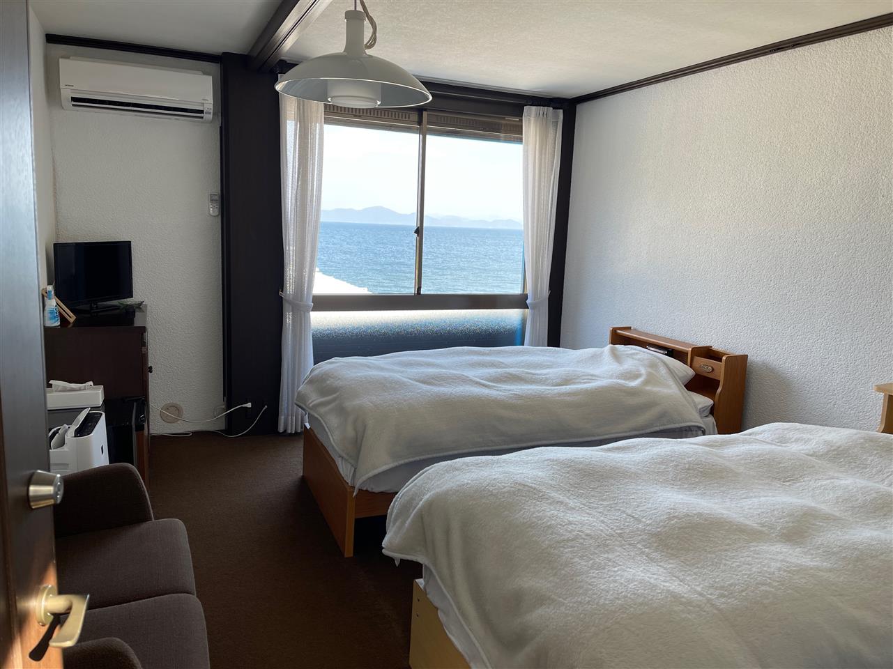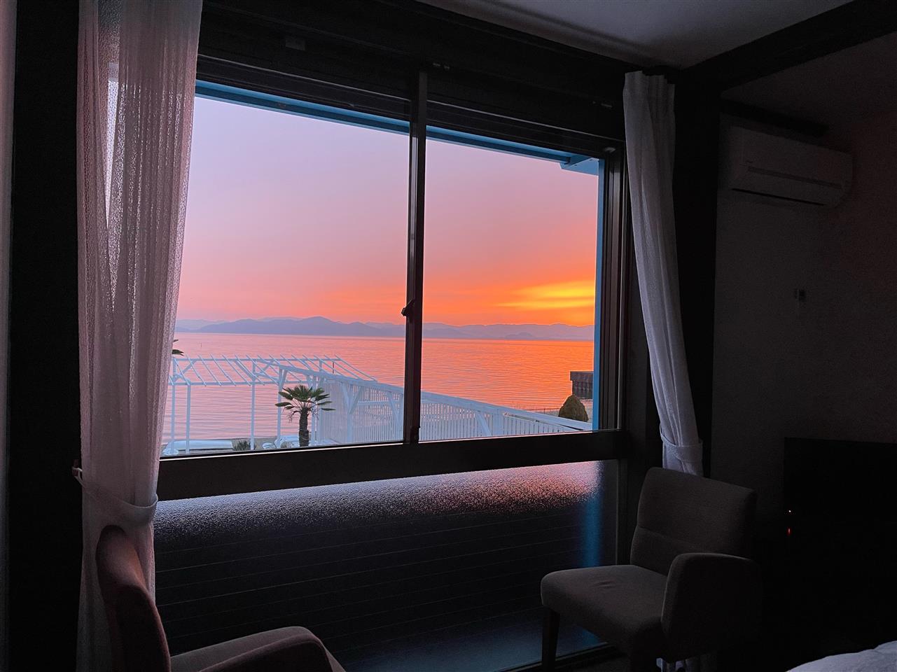 この時期の宿泊は、二階のお部屋から天候にはよりますが、素敵な朝陽、朝焼けをご覧いただけます。インスタ映え間違いなしですね。