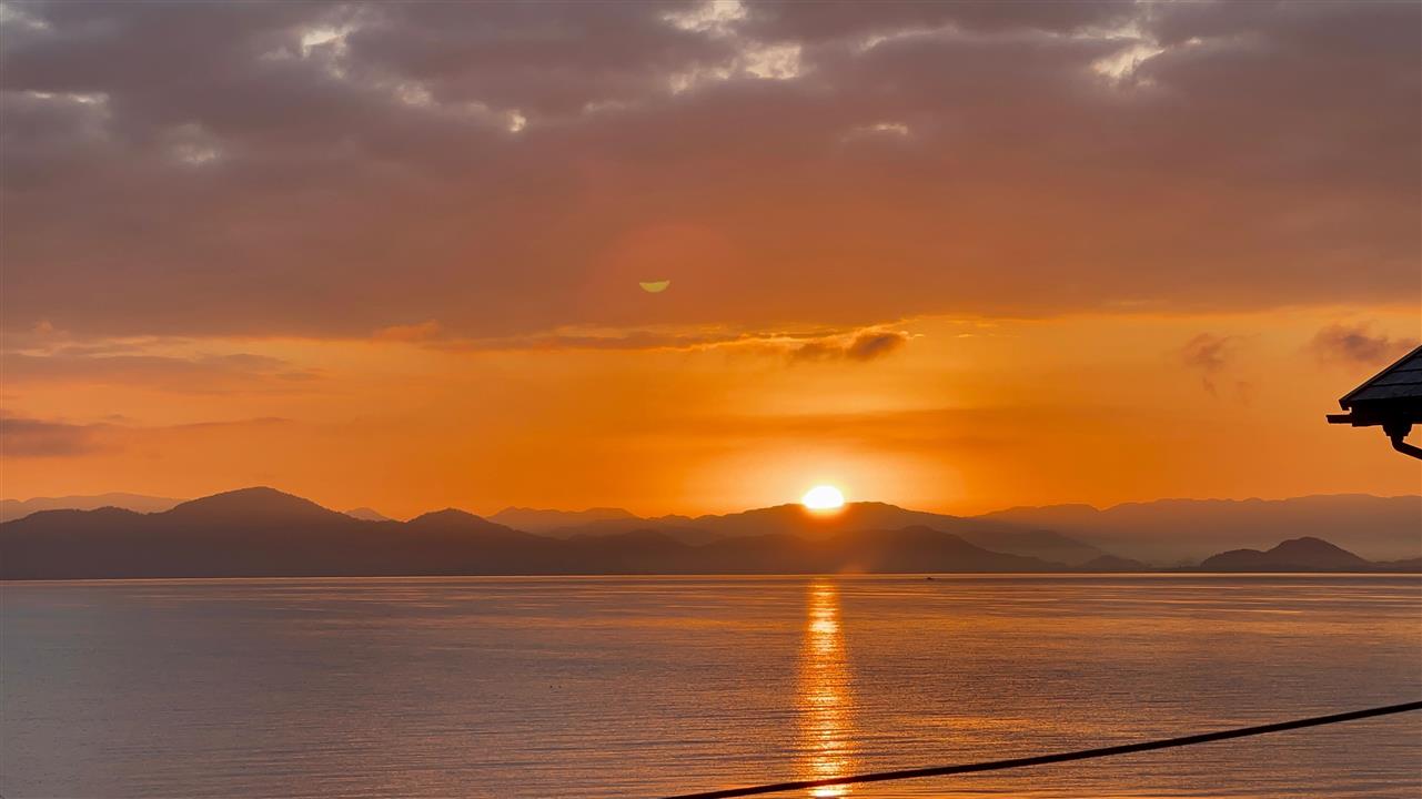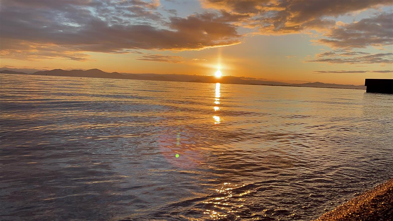 朝陽だけでなく、琵琶湖絶景が楽しめます。夕陽は山側に落ちますが、その反射も素敵で!夕焼けも赤く焼けることもしばしば♡