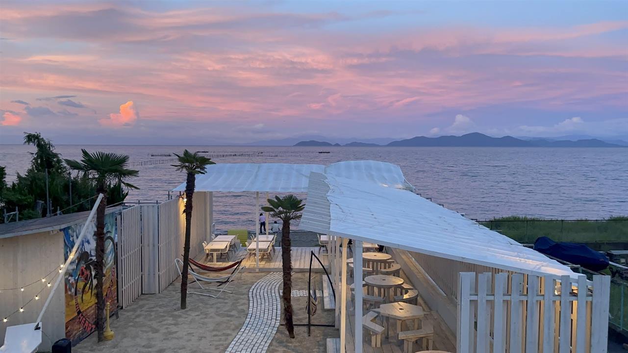 ワニベースカフェは、17時で閉店しますが、ビーチカフェが開いてる時は、だんだんと涼しくなる風を感じながら過ごしてもらえます。