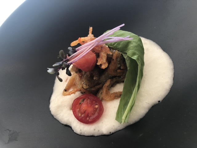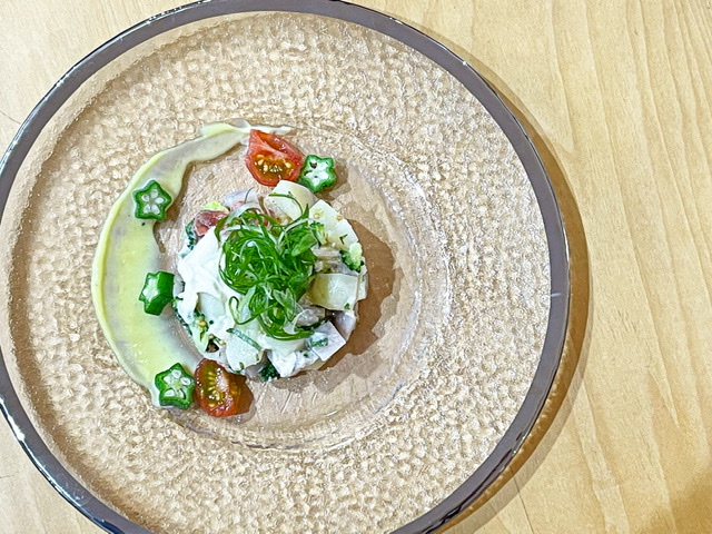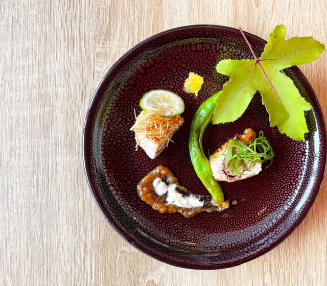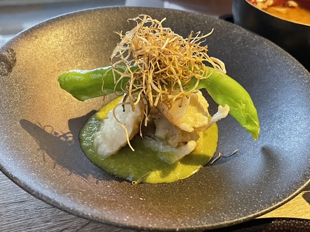 「ニゴイのフリット万願寺ソース」