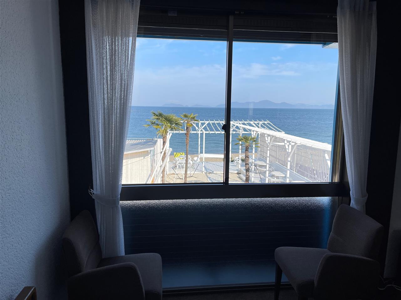 けど、目の前のビーチまで、出ると、生の音と水面の光がより一段と綺麗です〜