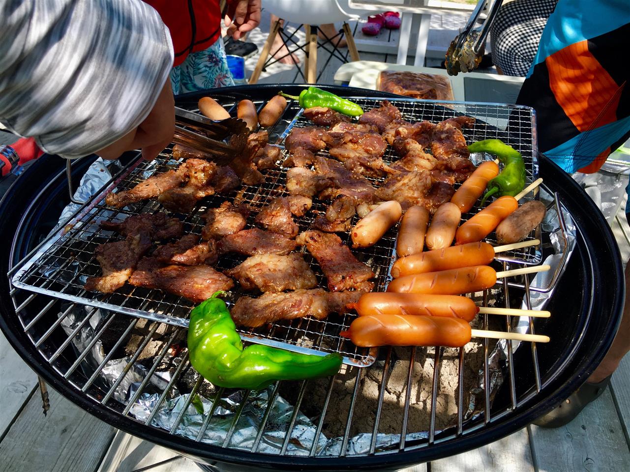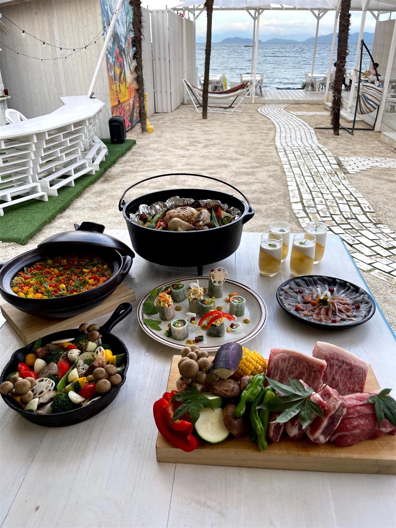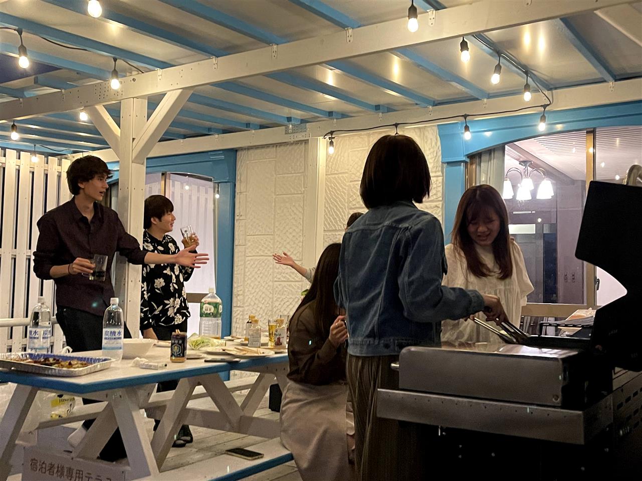 琵琶湖のプライベートビーチに面したテラスでのBBQ